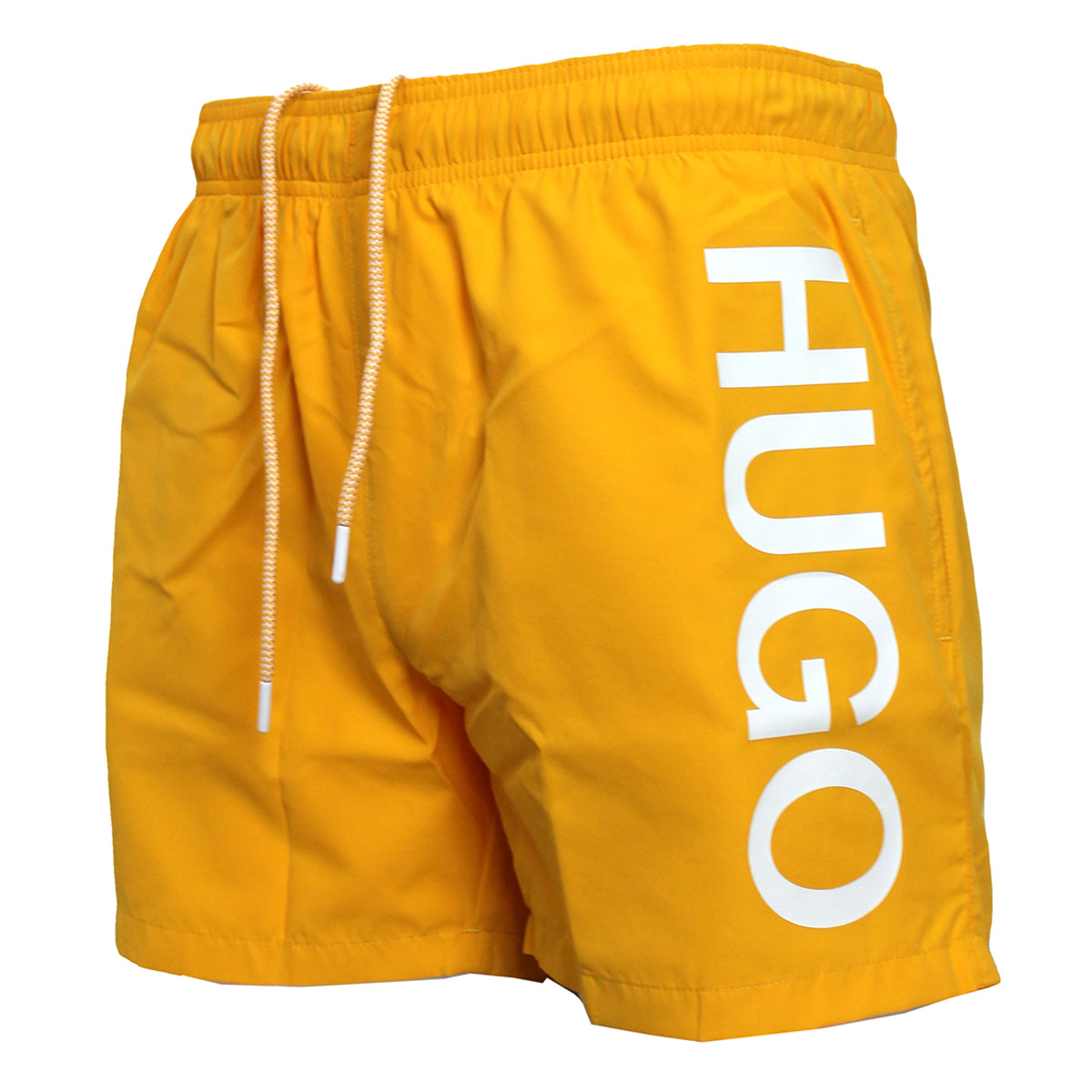 Signature swim shorts by HUGO, designed in matte fabric with a brushed and quick-drying finish. Lined with mesh, these short-length swim shorts are foil-printed with a large-scale vertical logo at the left leg for bold contrast. An adjustable drawstring sits inside the waistband to create a streamlined look.