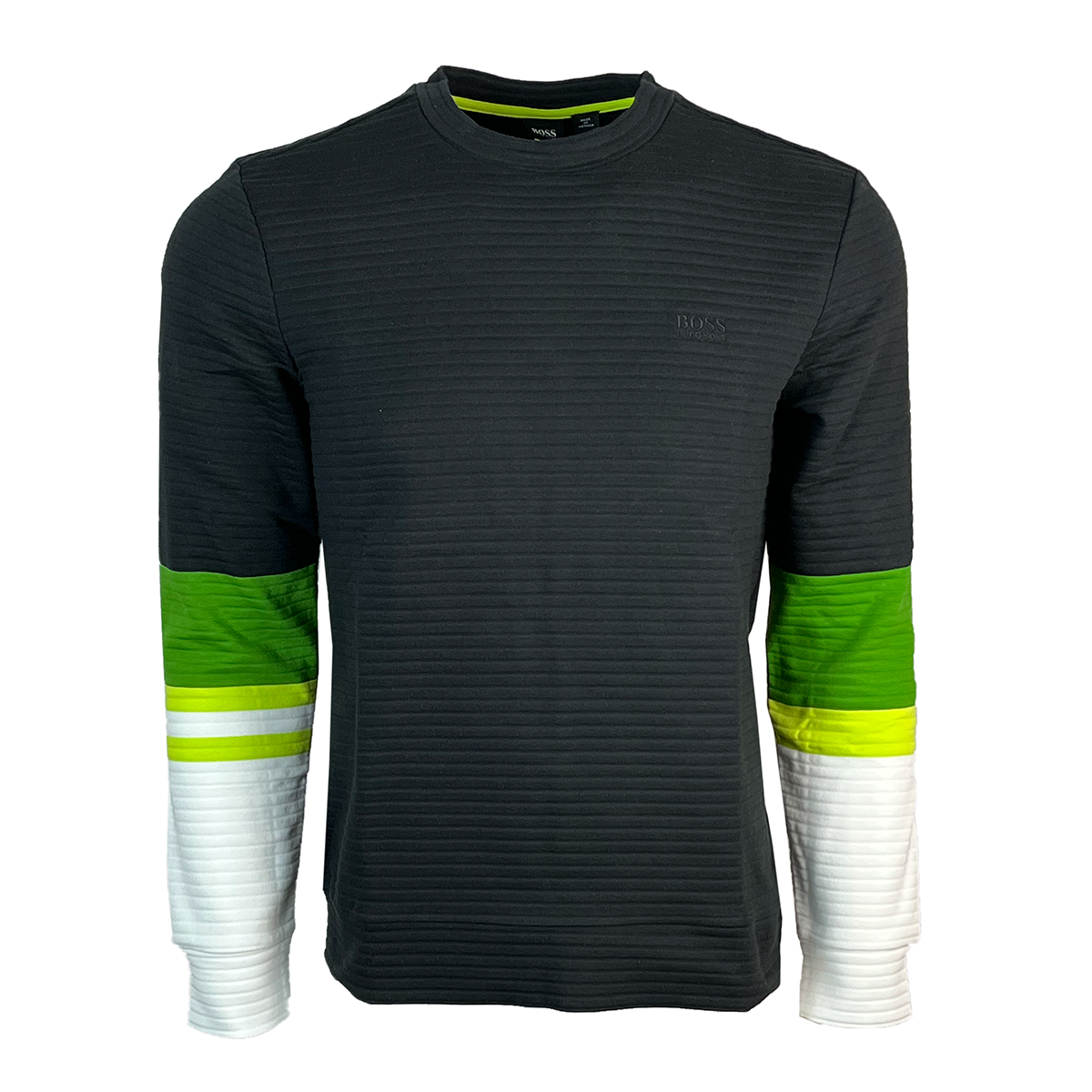 A slim-fitting sweatshirt by BOSS Menswear, designed with colour blocks for modern impact. Topped with a crew neckline, this casual sweatshirt is created with an ottoman structure in cotton blended with a touch of stretch for advanced comfort. A logo at the chest completes this versatile piece.